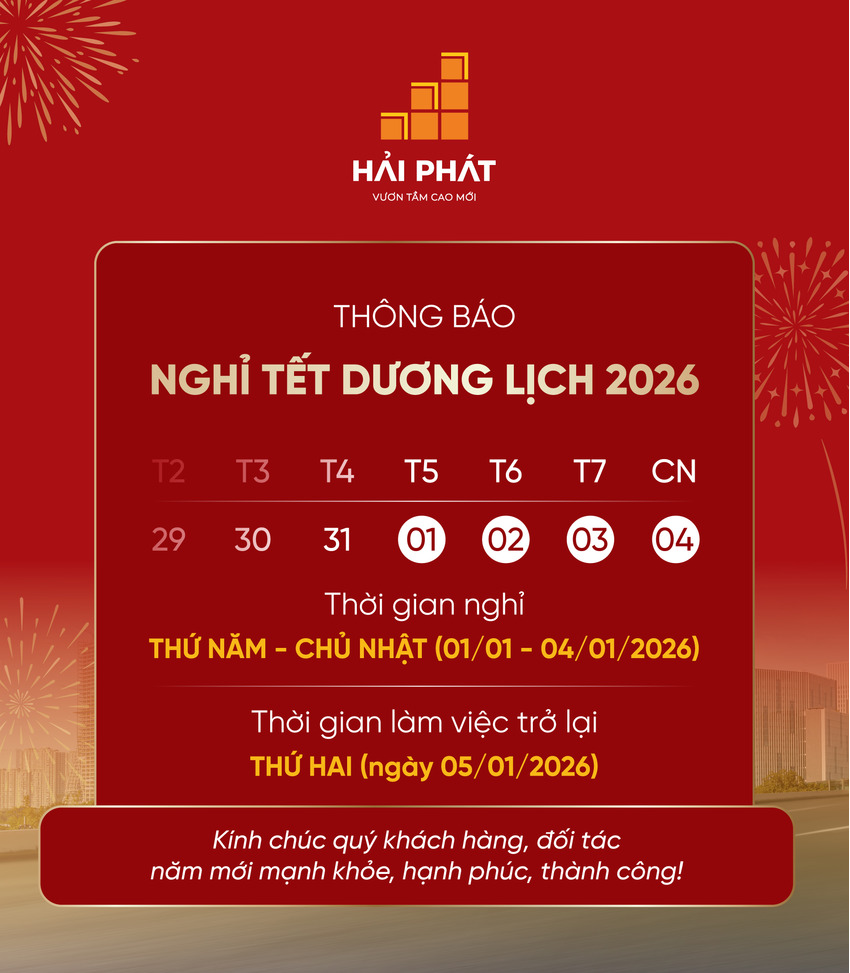 Công ty cổ phần Đầu tư Hải Phát trân trọng thông báo lịch nghỉ tết dương lịch 2026