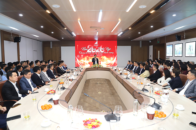Phát biểu khai xuân, Ông Đỗ Quý Hải - Chủ tịch HĐQT Tập đoàn đã điểm lại những dấu ấn nổi bật của năm 2025: các thương vụ M&A chiến lược được triển khai thành công, nhiều dự án trọng điểm đồng loạt khởi động, nền tảng tài chính và quản trị được củng cố vững chắc. Những thành quả đó không chỉ khẳng định bản lĩnh và năng lực điều hành của Ban Lãnh đạo mà còn là minh chứng cho tinh thần nỗ lực bền bỉ của toàn thể đội ngũ.
